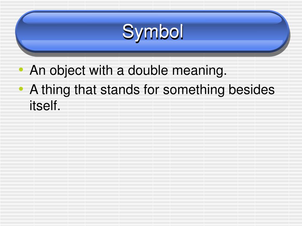 Symbol • An object with a double meaning. • A thing that stands for something besides itself.