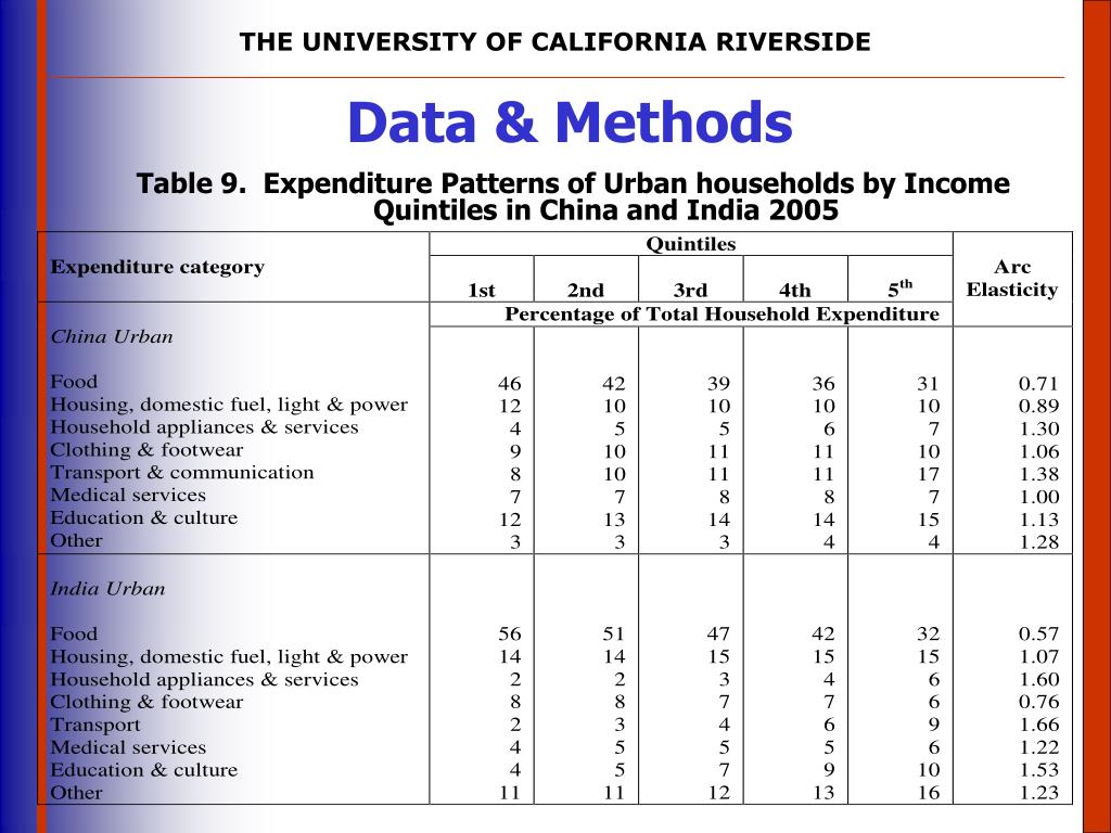 Data & Methods Table 3. Annual Household Expenditure in China and India 2005