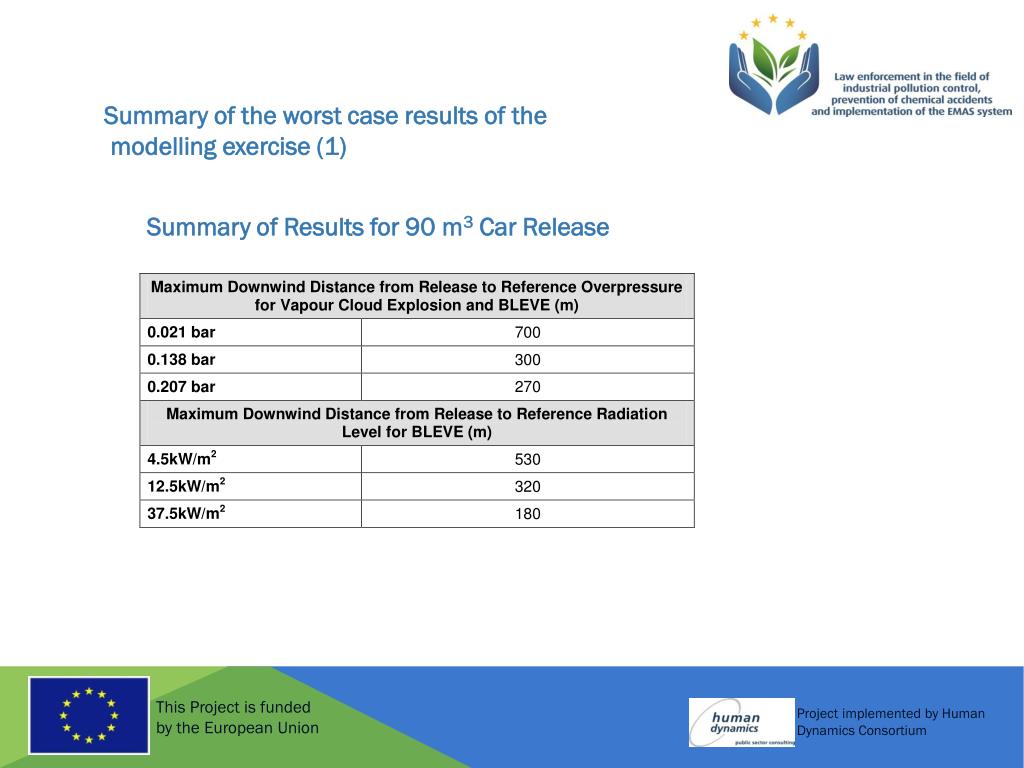 Summary of the worst case results of the modelling exercise (1) Summary of Results for 90 m3 Car Release