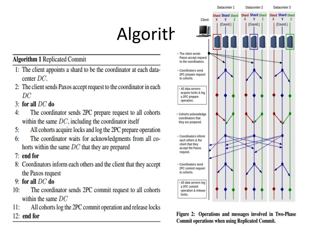 Replicated Commit • Reduce the number of cross-datacenter trips as much as possible • Replicate commit itself, rather than logs • Continue to ensure ACID • Remain agnostic to relational or key-value • High scalability