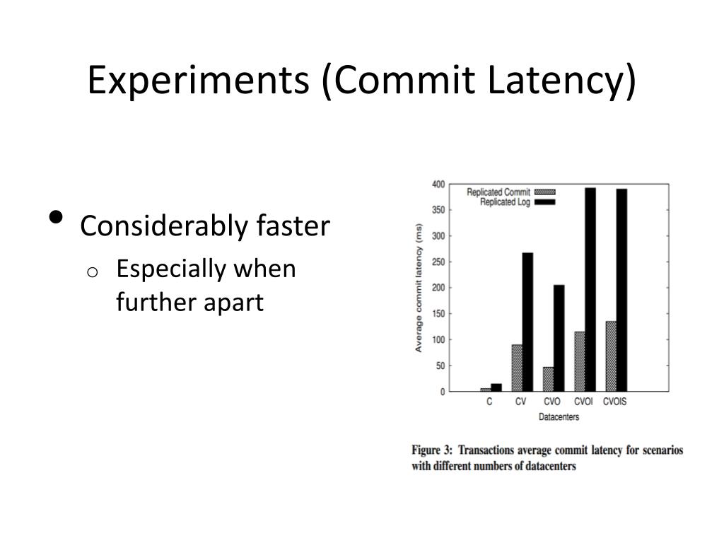 Experiments (Commit Latency) • Considerably faster • Especially when further apart