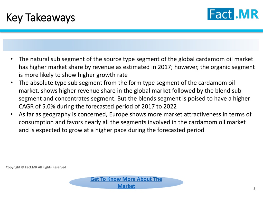 Copyright © Fact.MR All Rights Reserved Cardamom Oil Market Forecast, Trend Analysis & Competition Tracking: Global Market insights 2017 to 2022