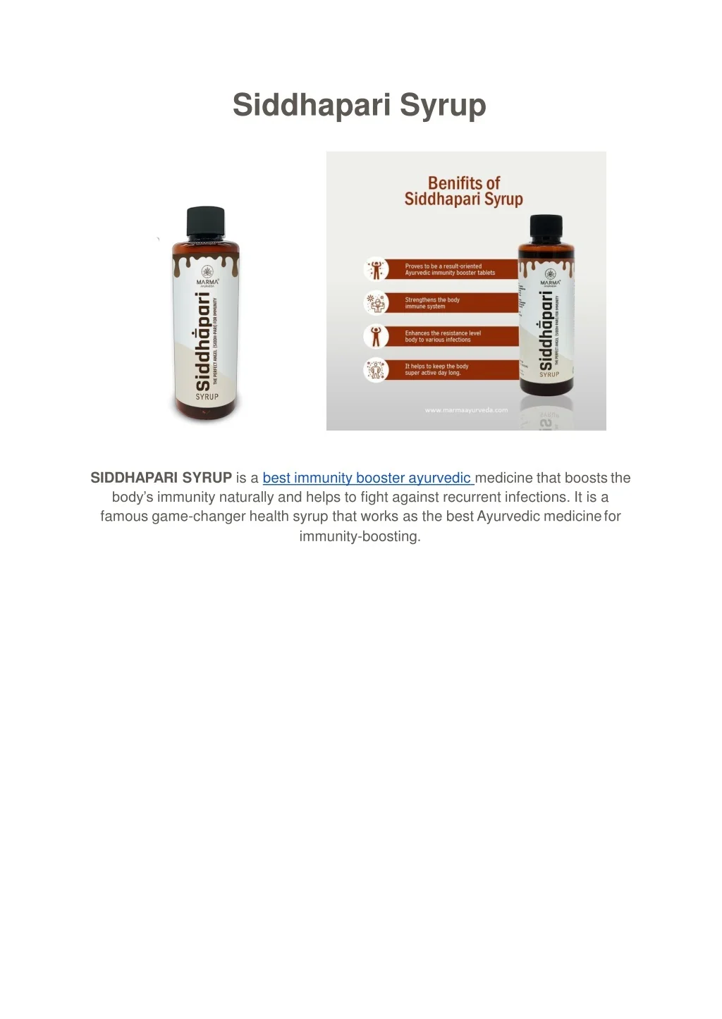 SIDDHAPARI SYRUP is a ayurvedic medicine for immunity poweryrup that boosts the bodyu2019s immunity naturally and helps to fight against recurrent infections.