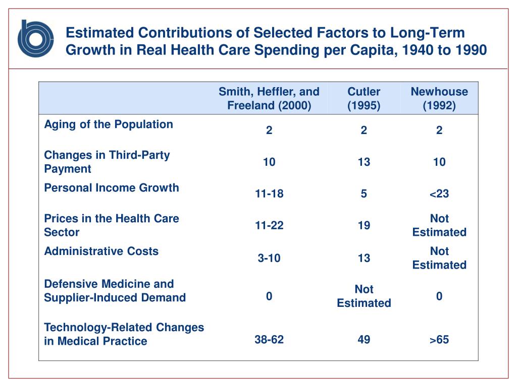 Estimated Contributions of Selected Factors to Long-Term Growth in Real Health Care Spending per Capita, 1940 to 1990