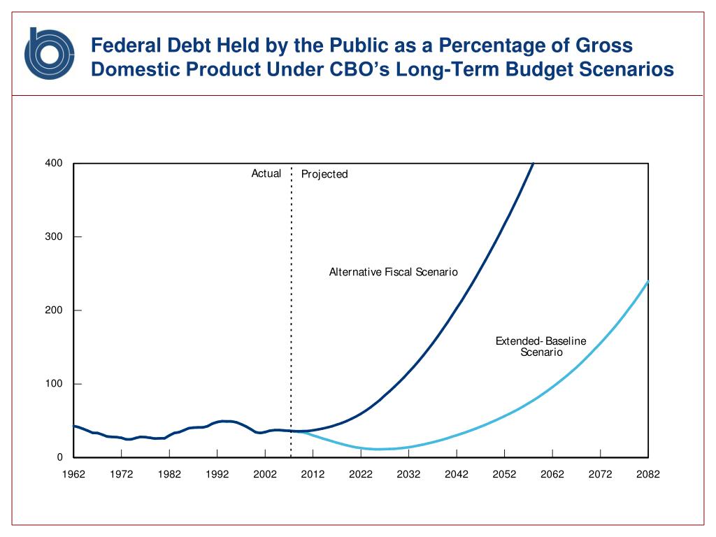 Federal Debt Held by the Public as a Percentage of Gross Domestic Product Under CBO’s Long-Term Budget Scenarios