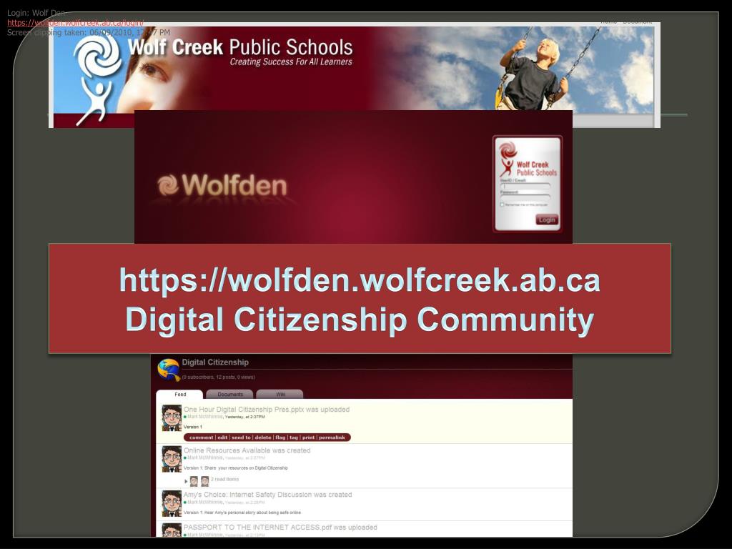 Login: Wolf Den https://wolfden.wolfcreek.ab.ca/login/ Screen clipping taken: 06/09/2010, 12:47 PM https://wolfden.wolfcreek.ab.ca Digital Citizenship Community