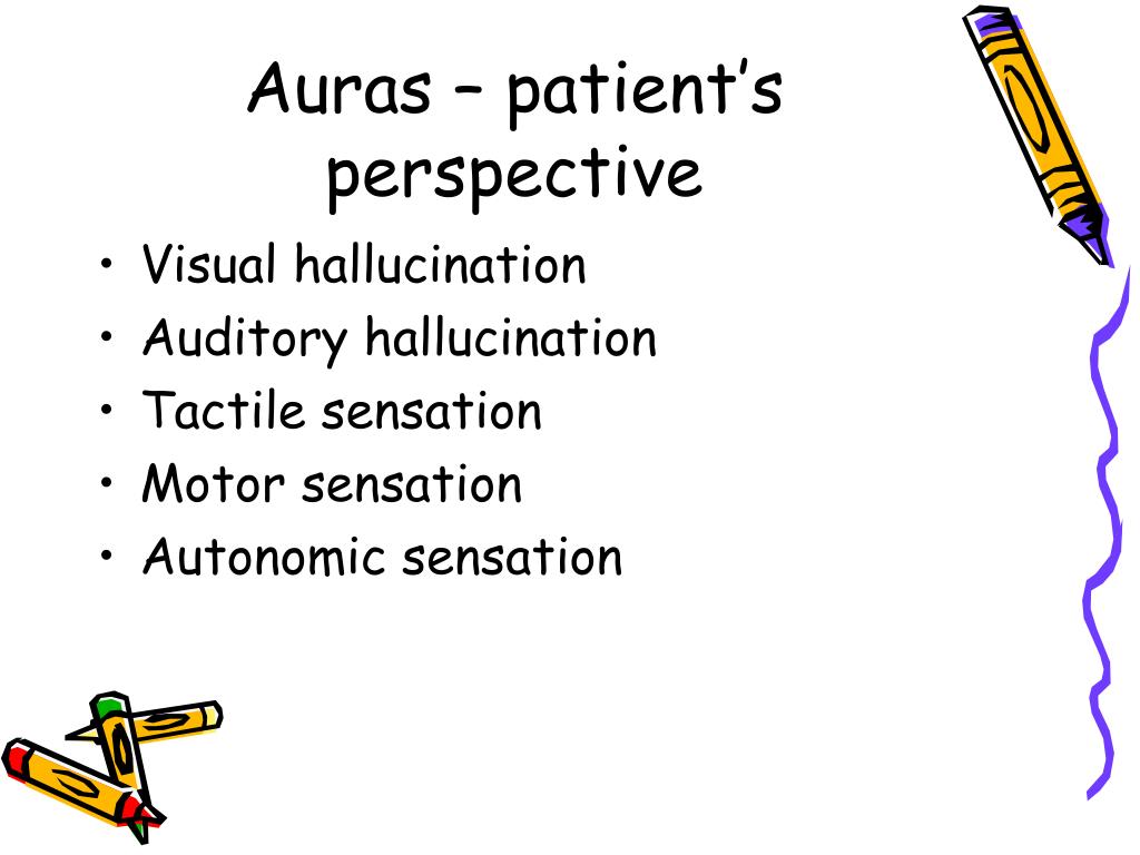 Auras – patient’s perspective • Visual hallucination • Auditory hallucination • Tactile sensation • Motor sensation • Autonomic sensation