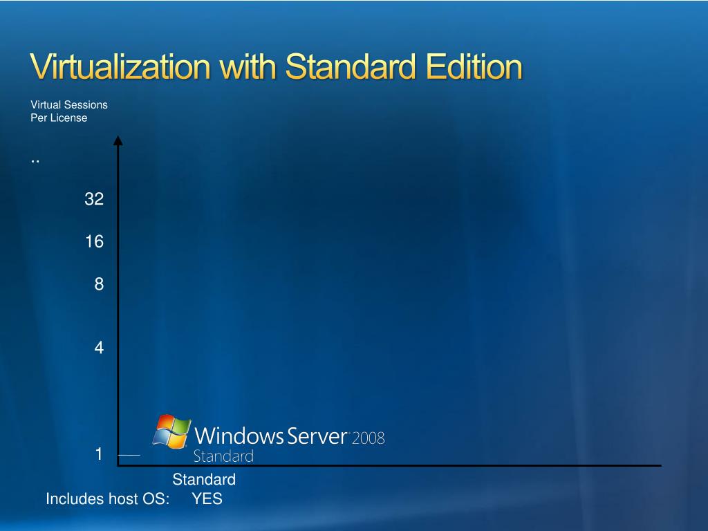 Virtualization with Standard Edition Virtual Sessions Per License .. 32 16 8 4 1 Standard Includes host OS: YES