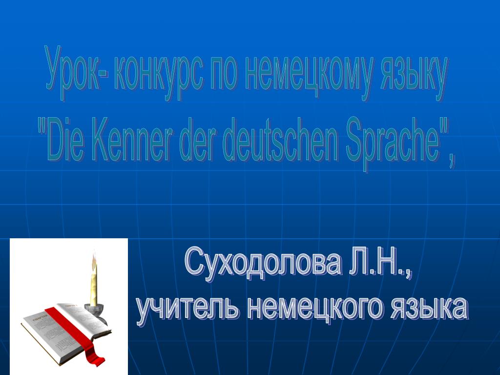 Урок- конкурс по немецкому языку " Die Kenner der deutschen Sprache", . Cуходолова Л.Н., учитель немецкого языка.