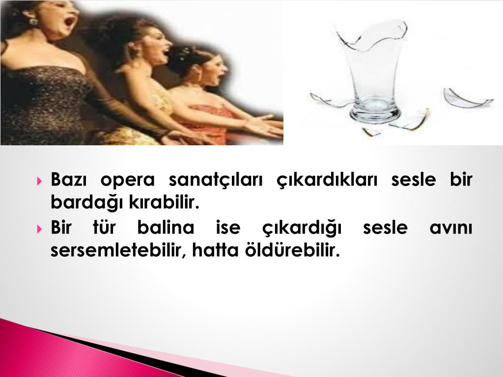 Bazı opera sanatçıları çıkardıkları sesle bir bardağı kırabilir. • Bir tür balina ise çıkardığı sesle avını sersemletebilir, hatta öldürebilir.