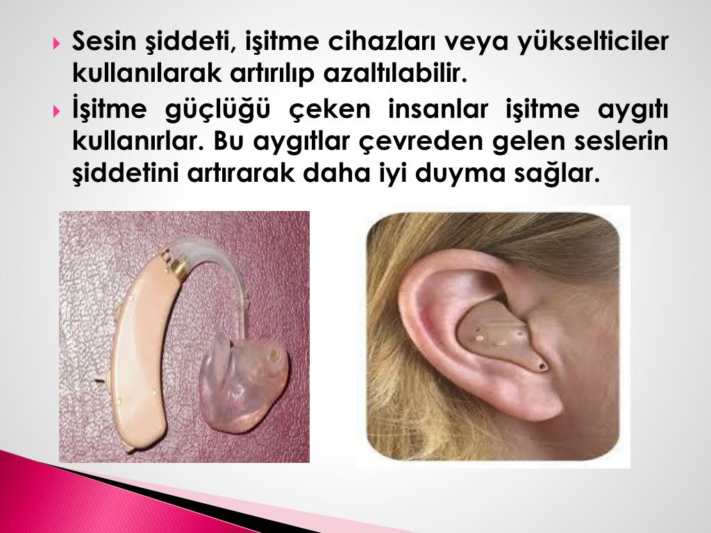 Sesin şiddeti, işitme cihazları veya yükselticiler kullanılarak artırılıp azaltılabilir. • İşitme güçlüğü çeken insanlar işitme aygıtı kullanırlar. Bu aygıtlar çevreden gelen seslerin şiddetini artırarak daha iyi duyma sağlar.