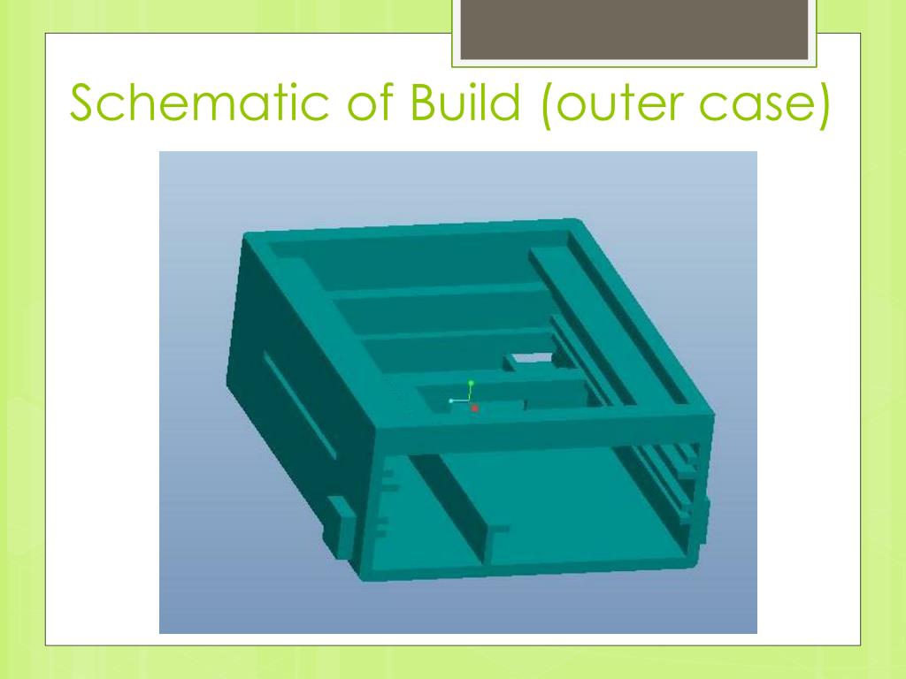 Procedure of Build Cont’ • Week 4 • Test PCB • Start design for part placement in case • Order spacers and insulation for case • Have developed program to start testing • Week 5 • Re-machine Case and continue fitting parts • Test connections and interactions between MCU and other devices • Order PCB • Week 6 • Test Durability of general design • Finish Full Build • Week 7 • Application testing of device • Week 8 – 10 • Presentation Set up