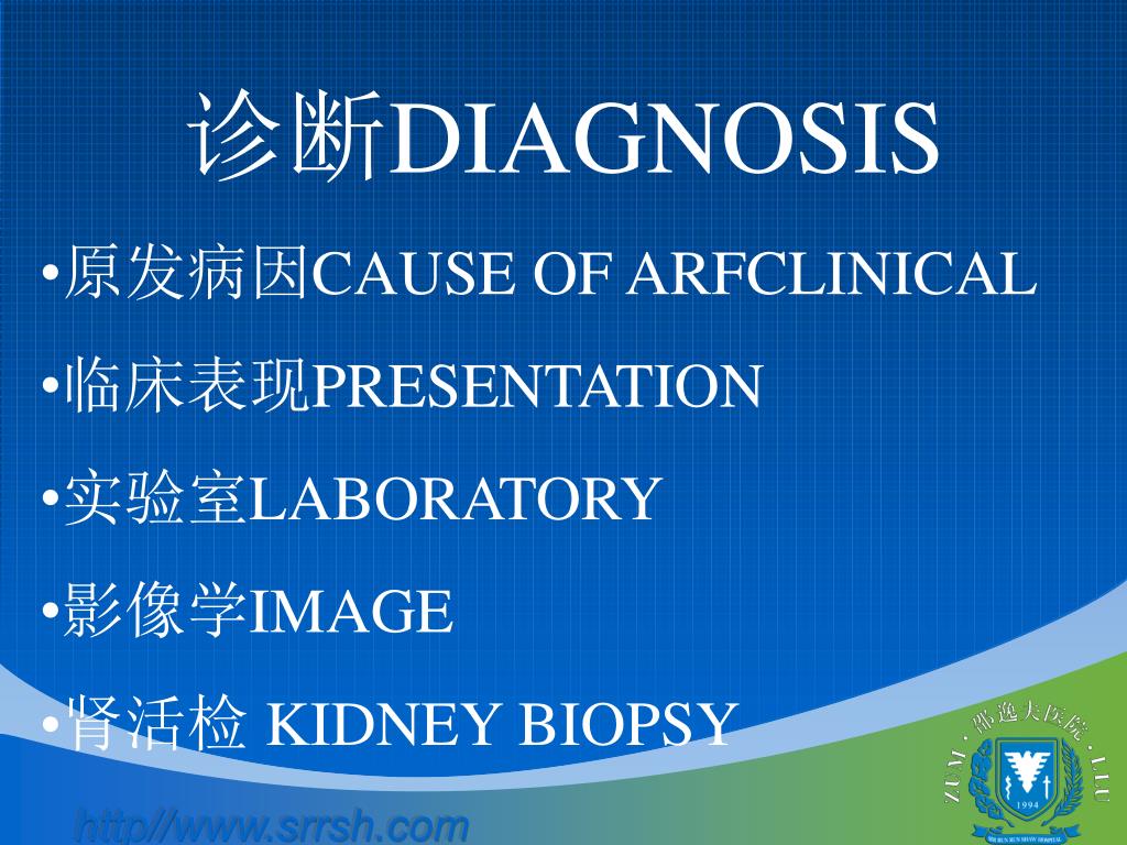 诊断DIAGNOSIS • 原发病因CAUSE OF ARFCLINICAL • 临床表现PRESENTATION • 实验室LABORATORY • 影像学IMAGE • 肾活检 KIDNEY BIOPSY
