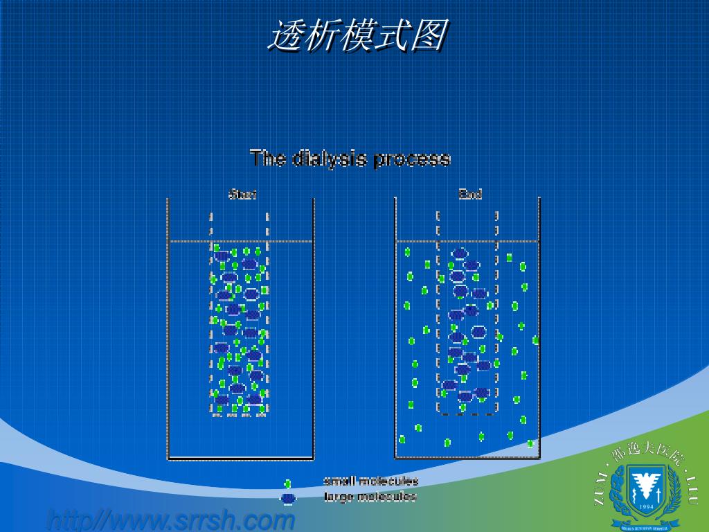 透析疗法Hemodialysis • 排除毒素 Excretion • 调节水、电介质和酸碱平衡 Regulation