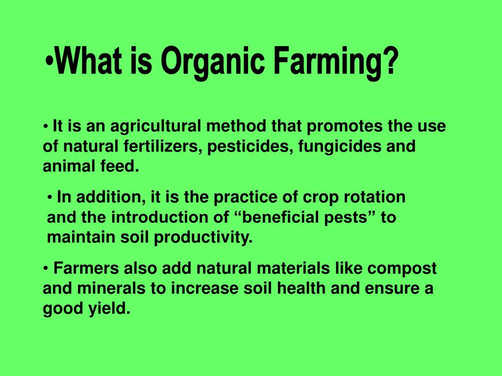 What is Organic Farming? It is an agricultural method that promotes the use of natural fertilizers, pesticides, fungicides and animal feed. In addition, it is the practice of crop rotation and the introduction of “beneficial pests” to maintain soil productivity. Farmers also add natural materials like compost and minerals to increase soil health and ensure a good yield.