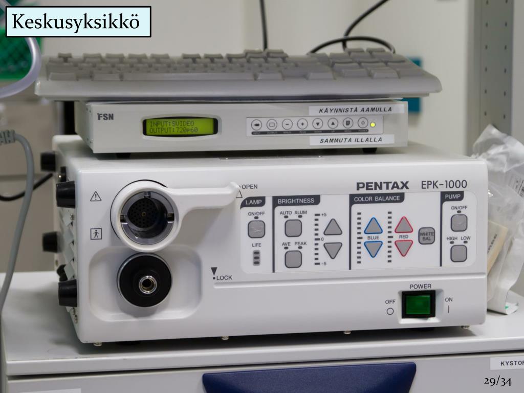 Endoskopiakirurgia • Tähystystutkimus / leikkaus • Koostuu: • Tähystimestä • Keskusyksikkö • Monitorista • Tähystimessä kulkee: • Valo • Kuva • Ilma / imu • Instrumenttikanava • Ohjausvaijerit