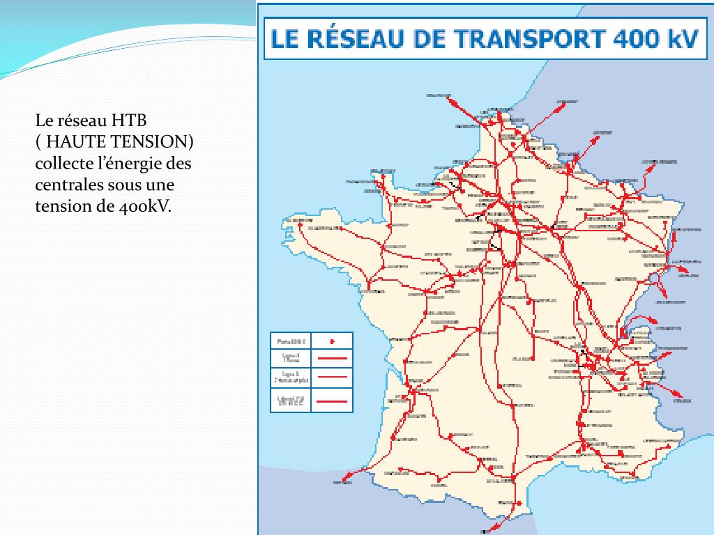 Le réseau HTB ( HAUTE TENSION) collecte l’énergie des centrales sous une tension de 400kV.