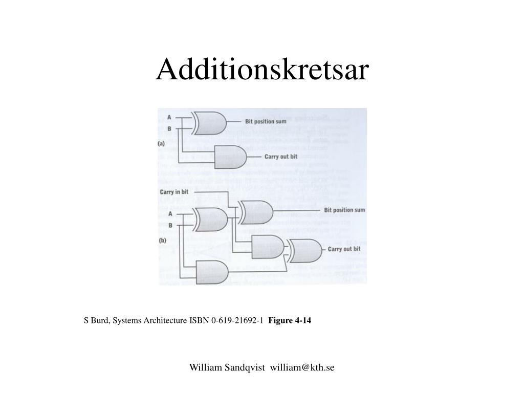 Additionskretsar S Burd, Systems Architecture ISBN 0-619-21692-1 Figure 4-14 William Sandqvist william@kth.se