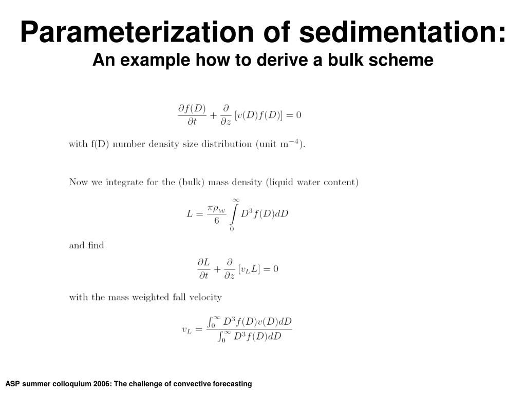 Parameterization of sedimentation:An example how to derive a bulk scheme ASP summer colloquium 2006: The challenge of convective forecasting
