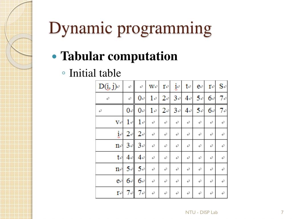 Dynamic programming • Tabular computation • Initial table NTU - DISP Lab
