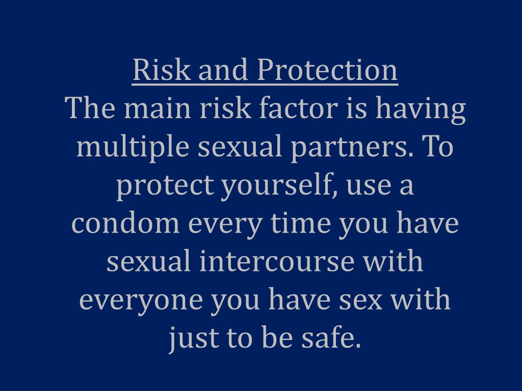 Risk and Protection The main risk factor is having multiple sexual partners. To protect yourself, use a condom every time you have sexual intercourse with everyone you have sex with just to be safe.