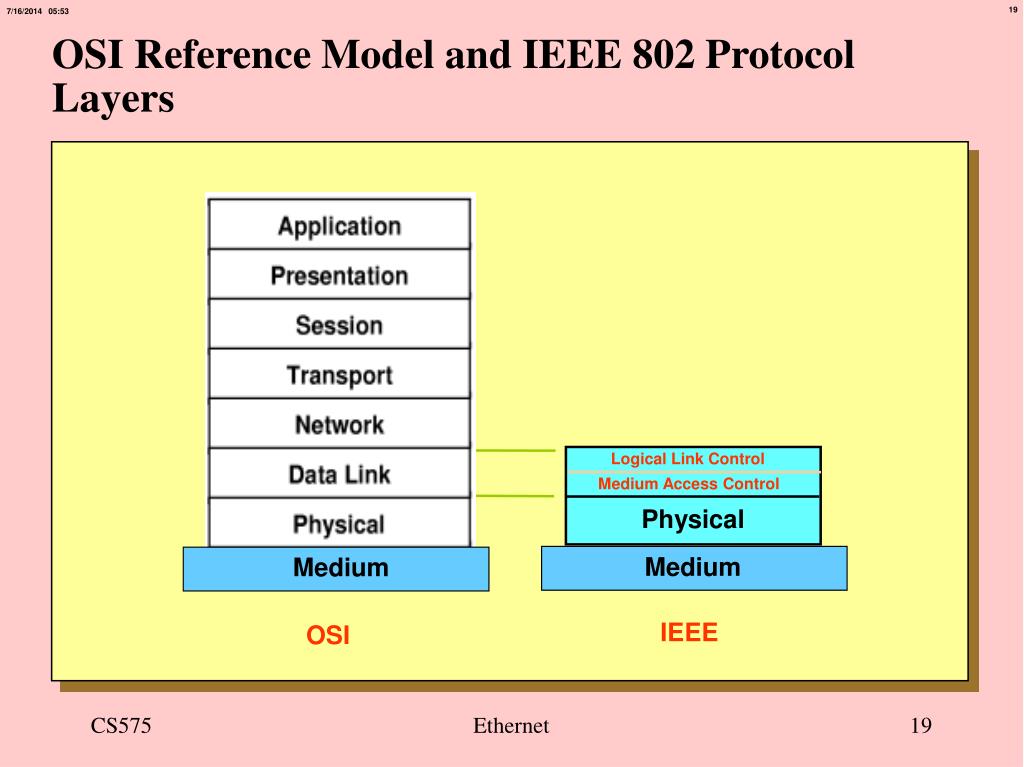 Logical Link Control Medium Access Control Physical Medium Medium OSI Reference Model and IEEE 802 Protocol Layers IEEE OSI Ethernet
