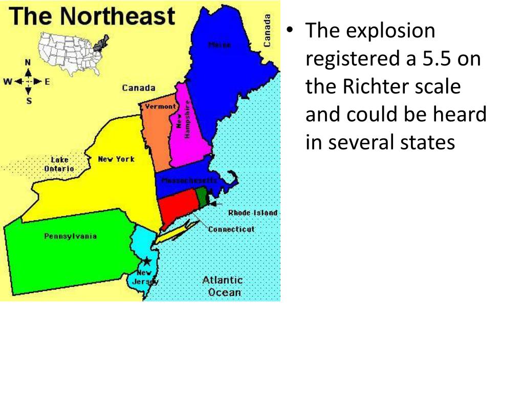 The explosion registered a 5.5 on the Richter scale and could be heard in several states