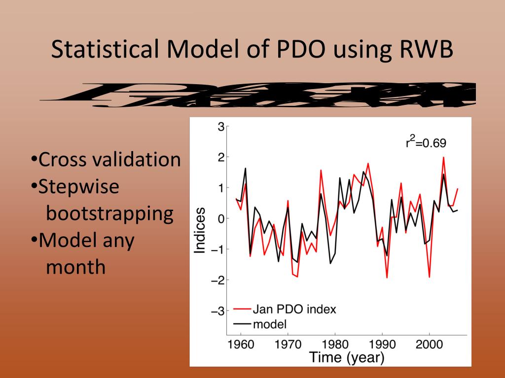 Statistical Model of PDO using RWB • Cross validation • Stepwise • bootstrapping • Model any • month