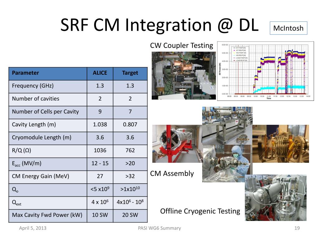 McIntosh New Cryomodule in ALICE • Common interest in CW SRF cryomodule design and operation PASI WG6 Summary