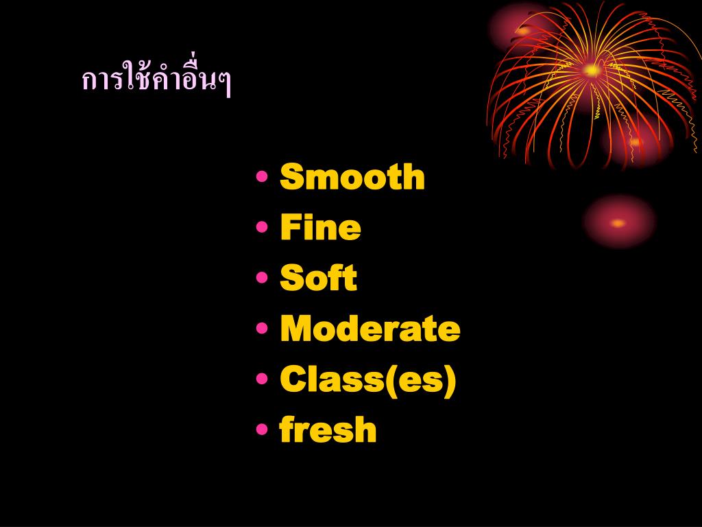 การใช้คำอื่นๆ • Smooth • Fine • Soft • Moderate • Class(es) • fresh