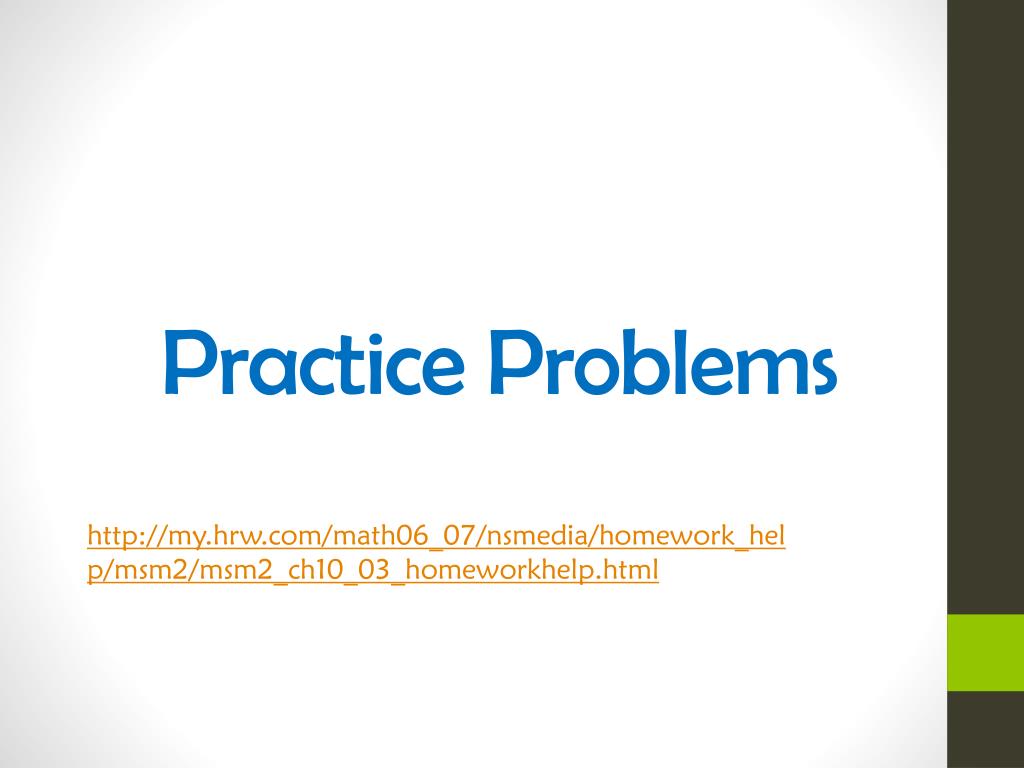 Practice Problems http://my.hrw.com/math06_07/nsmedia/homework_help/msm2/msm2_ch10_03_homeworkhelp.html