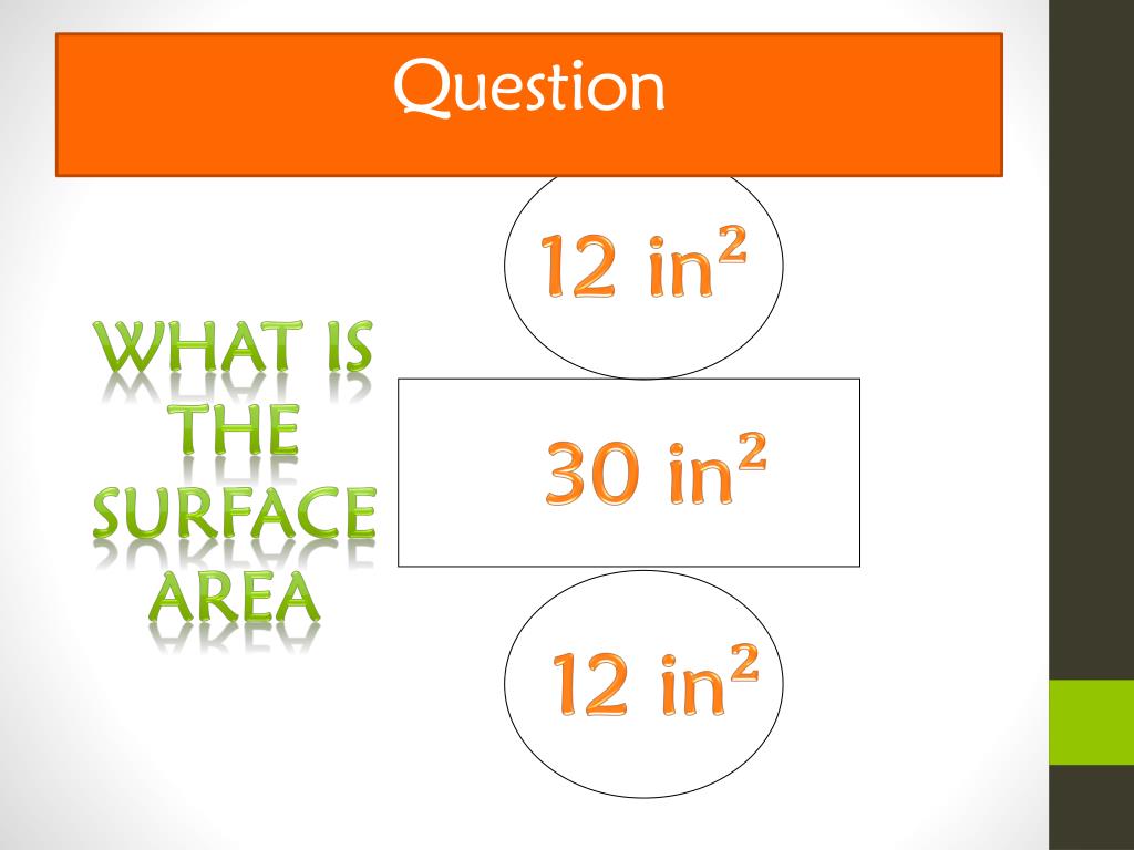 Question 12 in² What is the Surface area 30 in² 12 in²