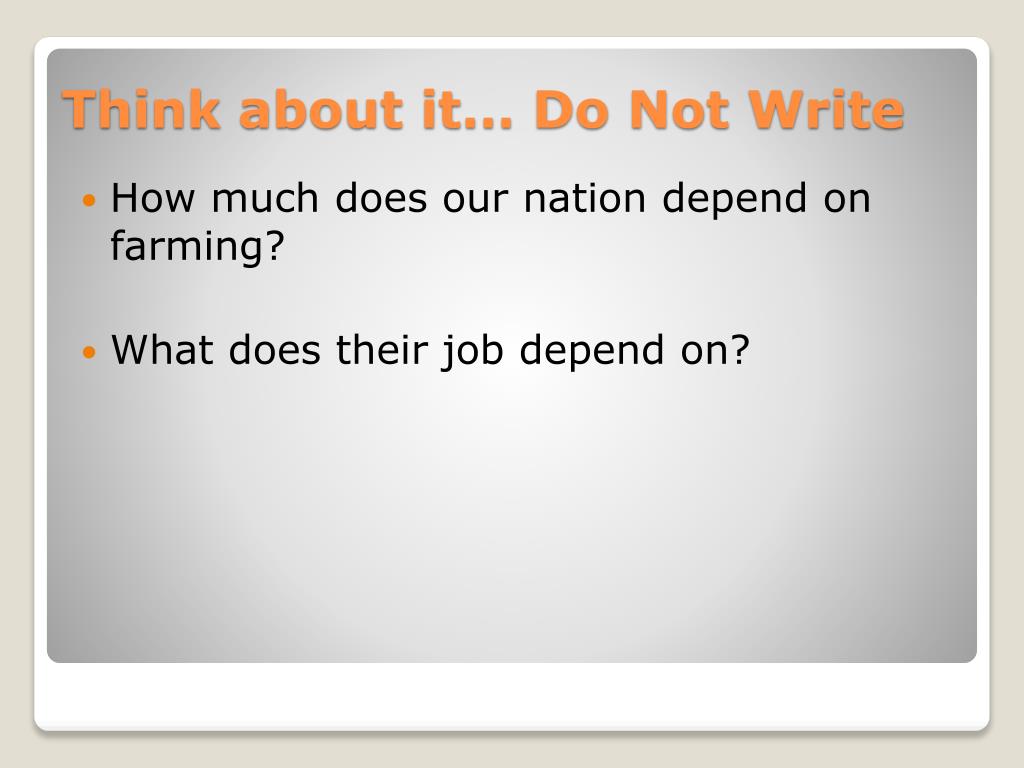 How much does our nation depend on farming? • What does their job depend on? Think about it… Do Not Write