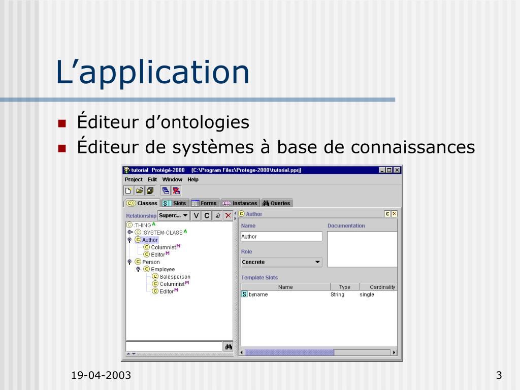 L’application • Éditeur d’ontologies • Éditeur de systèmes à base de connaissances