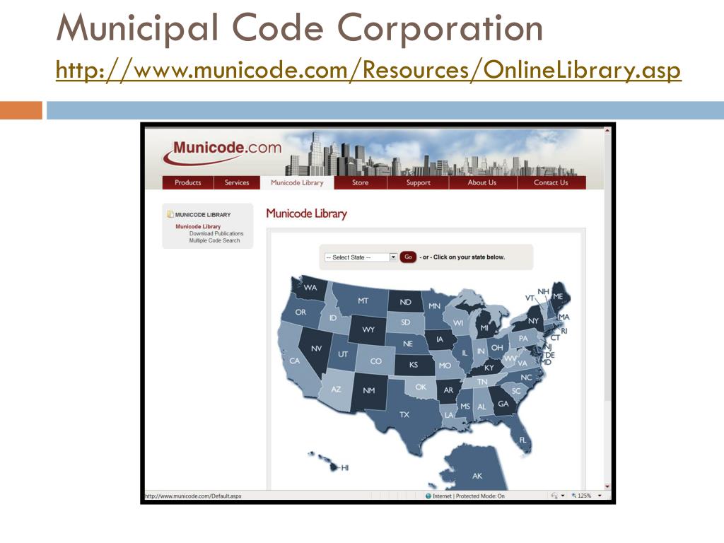 Municipal Code Corporationhttp://www.municode.com/Resources/OnlineLibrary.asp