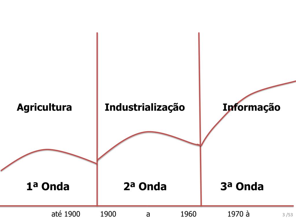 Agricultura Industrialização Informação 1ª Onda 2ª Onda 3ª Onda até 1900 1900 a 1960 1970 à