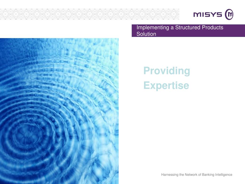 System Requirements • Flexibility in Structured Products Design • Control and Security in Trade Input and Access • Trade Lifecycle and Integration • Trends in Valuation Models • Implementing a Structured Product Solution Harnessing the Network of Banking Intelligence