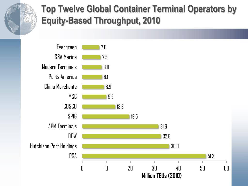 Top Twelve Global Container Terminal Operators by Equity-Based Throughput, 2010