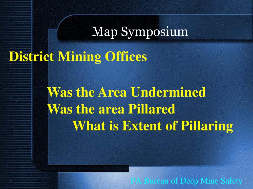 District Mining Offices Was the Area Undermined Was the area Pillared What is Extent of Pillaring