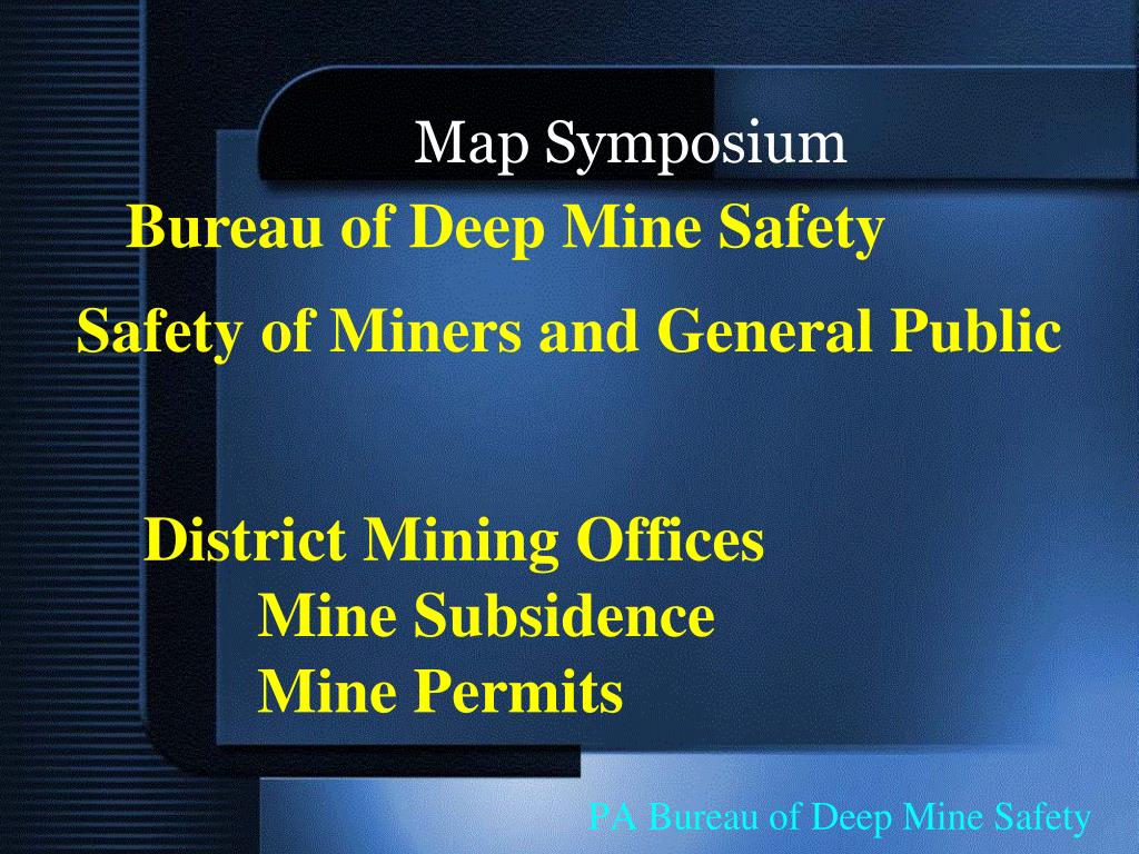 Bureau of Deep Mine Safety Safety of Miners and General Public District Mining Offices Mine Subsidence Mine Permits