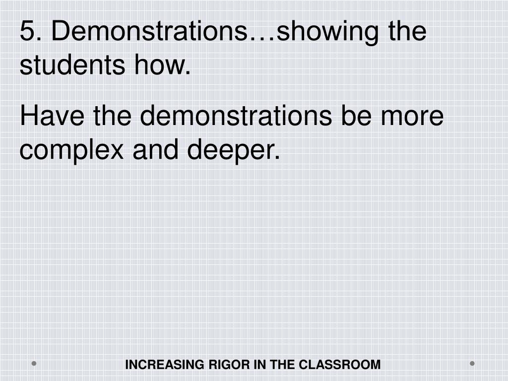 5. Demonstrations…showing the students how. Have the demonstrations be more complex and deeper. INCREASING RIGOR IN THE CLASSROOM