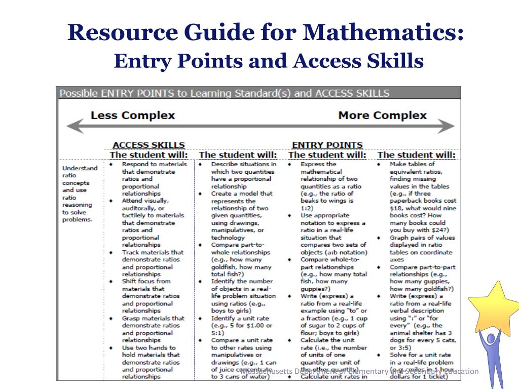 Resource Guide for Mathematics: Entry Points and Access Skills Massachusetts Department of Elementary and Secondary Education