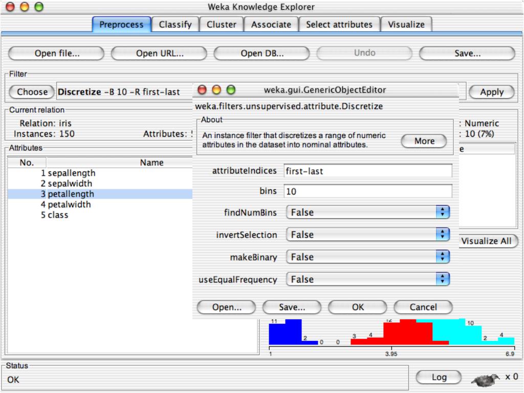 Explorer: pre-processing the data • Data can be imported from a file in various formats: ARFF, CSV, C4.5, binary • Data can also be read from a URL or from an SQL database (using JDBC) • Pre-processing tools in WEKA are called “filters” • WEKA contains filters for: • Discretization, normalization, resampling, attribute selection, transforming and combining attributes, …