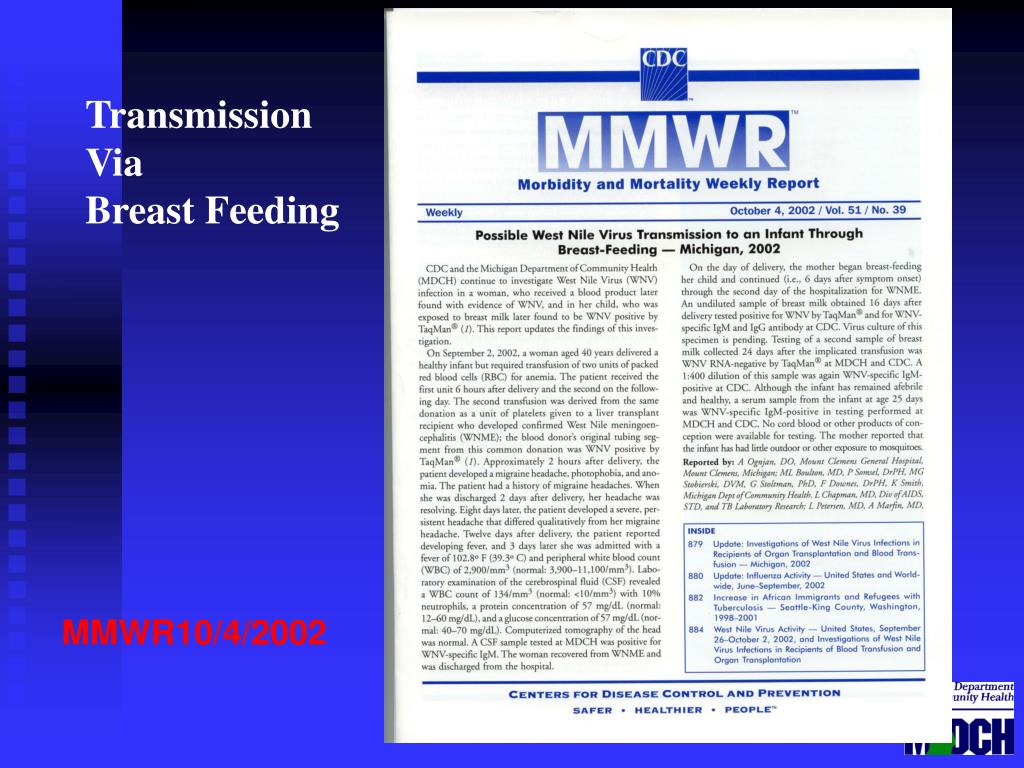 Transmission Via Breast Feeding MMWR10/4/2002