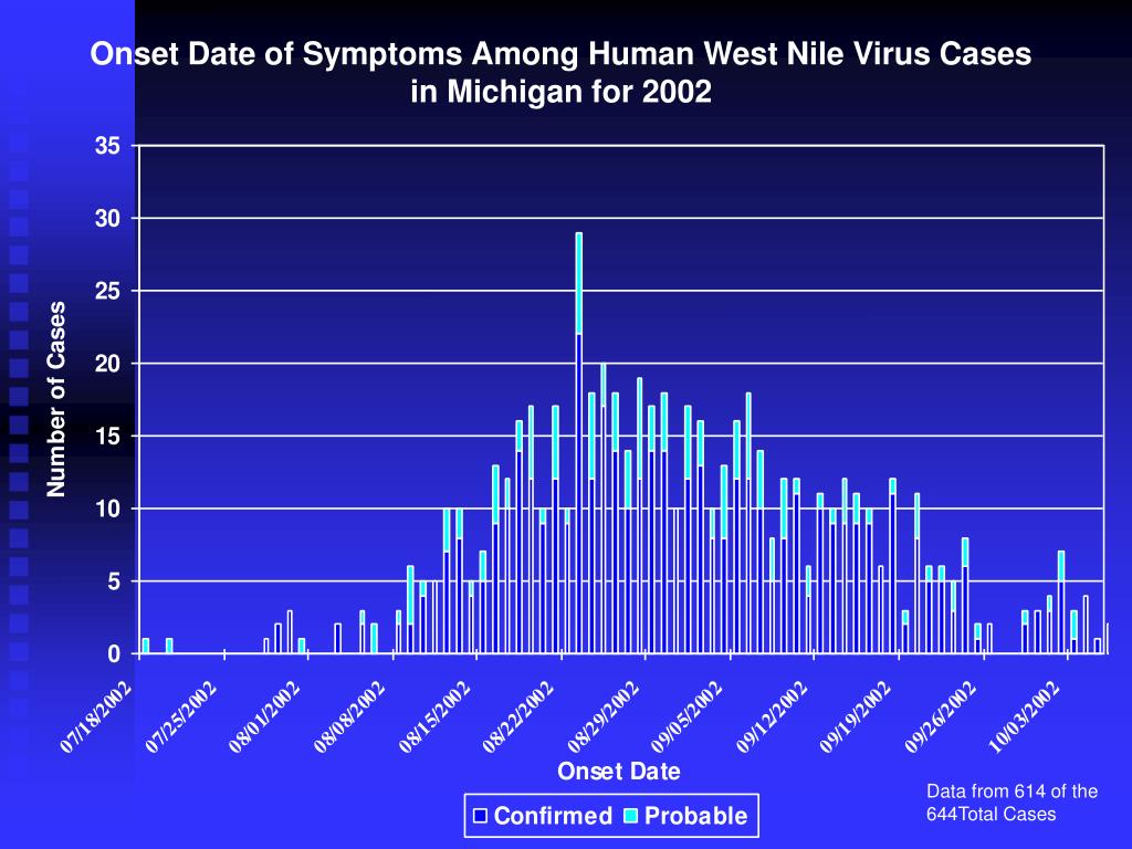 Onset Date of Symptoms Among Human West Nile Virus Cases in Michigan for 2002 Data from 614 of the 644Total Cases