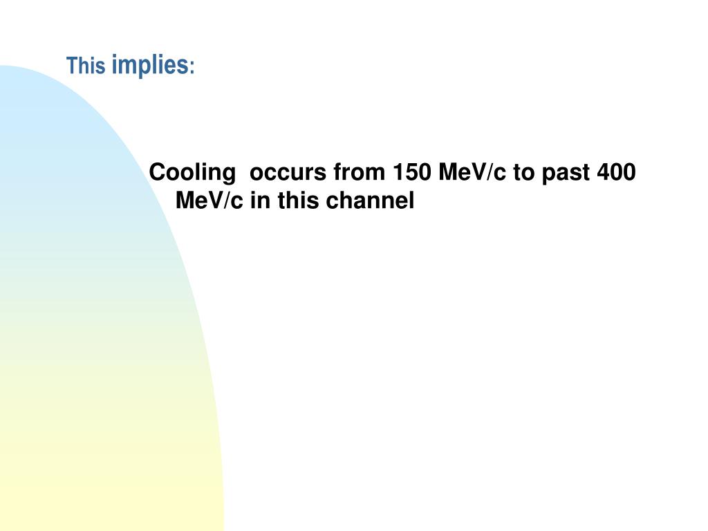 This implies: Cooling occurs from 150 MeV/c to past 400 MeV/c in this channel