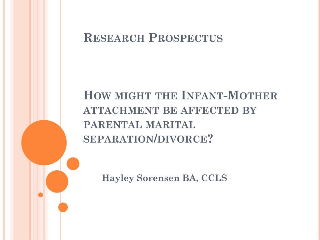 Research Prospectus How might the Infant-Mother attachment be affected by parental marital separation/divorce?. Hayley Sorensen BA, CCLS. Statement of the Problem. The divorce rate continues to rise each year