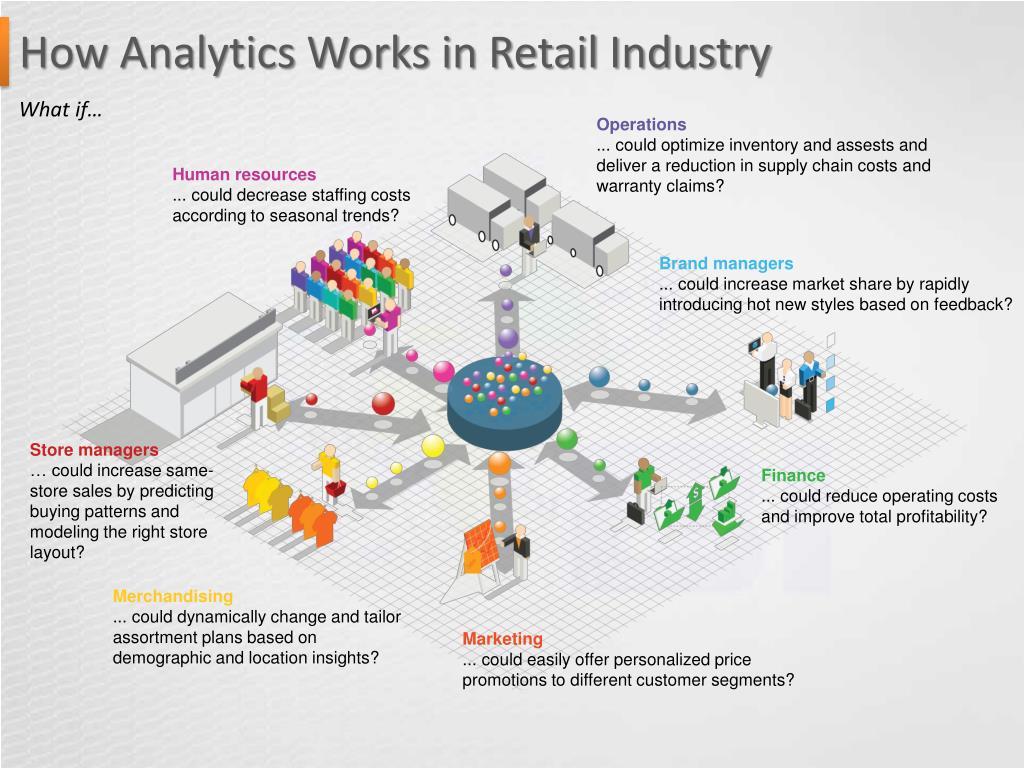Royal Cyber Retail Industry. How Analytics Works in Retail Industry. What if…. Operations ... could optimize inventory and assests and deliver a reduction in supply chain costs and warranty claims?. Human resources ... could decrease staffing costs according to seasonal trends?.