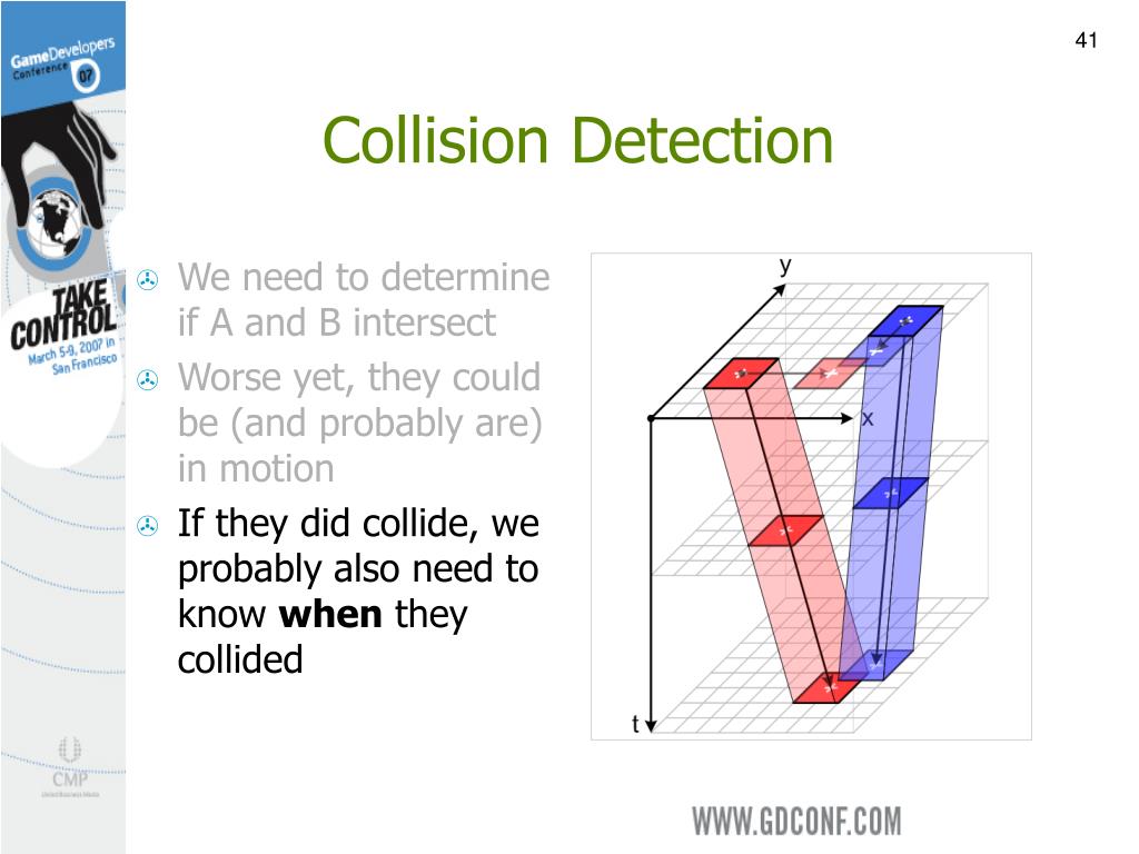 Collision Detection • We need to determine if A and B intersect • Worse yet, they could be (and probably are) in motion