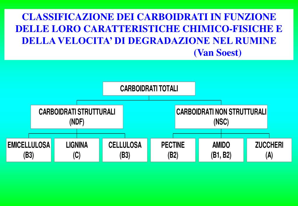 CLASSIFICAZIONE DEI CARBOIDRATI IN FUNZIONE DELLE LORO CARATTERISTICHE CHIMICO-FISICHE E DELLA VELOCITA’ DI DEGRADAZIONE NEL RUMINE (Van Soest)